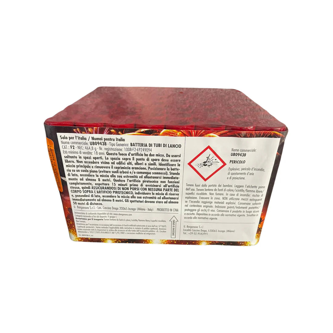 Ușor de utilizat și sigură, Party King poate fi montată rapid și eficient, asigurând un moment de magie pirotehnică ce va lăsa o impresie de durată. Fiecare explozie este o explozie de energie, iar bateria aceasta este perfectă pentru a adăuga un element de distracție și spectacol la orice ocazie specială.