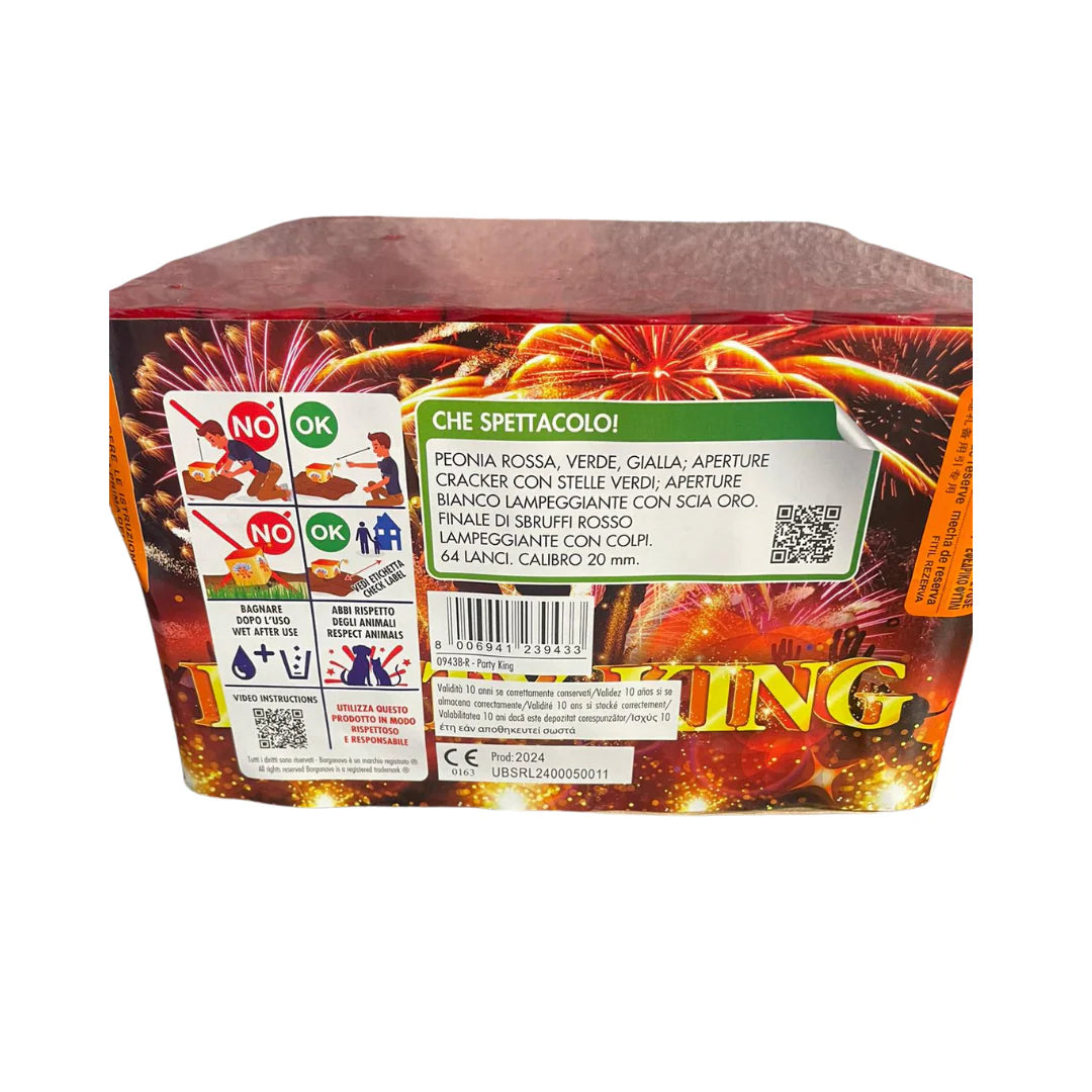 Indiferent că vorbim despre o petrecere de Anul Nou, o nuntă sau orice altă sărbătoare, Party King adaugă un nivel de energie și dinamism perfect pentru a crea amintiri de neuitat. Cu o secvență rapidă de focuri, bateria oferă un spectacol continuu de lumini și sunete, care va capta atenția tuturor participanților și va adăuga un farmec special evenimentului.